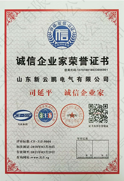 誠(chéng)信企業(yè)家榮譽(yù)證書(shū)